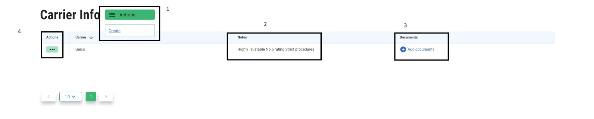 This page allows you to configure Carrier Info and add notes. This can be displayed on the case Cost/Maturity/Disposal tab, if the configured servicing carrier is selected on the Servicing tab. A number of documents can then be added to each Carrier Info created.