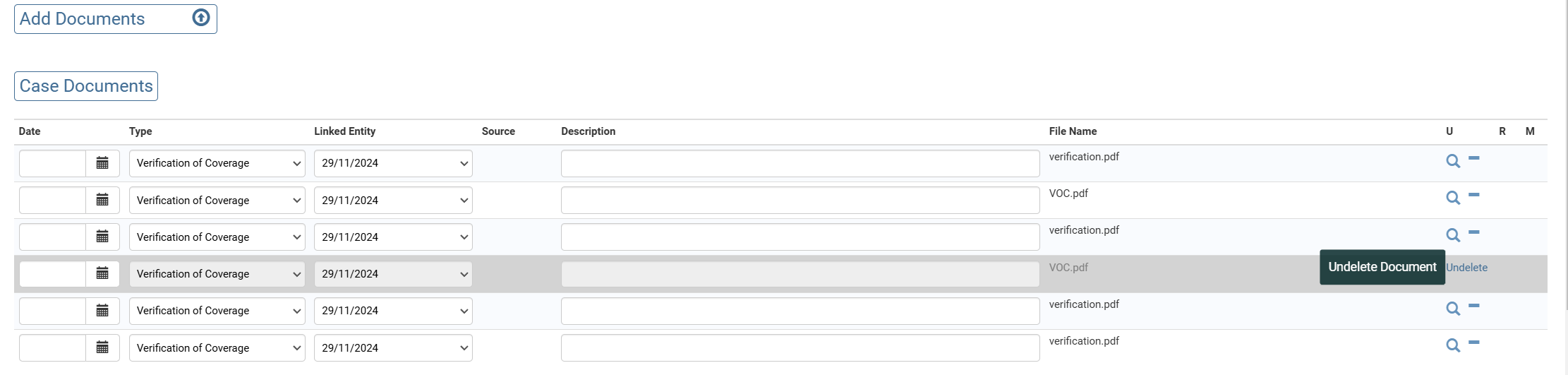 Due to some current limitations, you cannot edit Documents through the Documents tab if you’re performing another edit elsewhere in the Case Summary. Similarly, you will not be able to start an edit elsewhere that could potentially change Documents whilst you are editing the Documents tab.