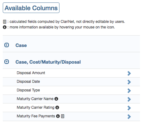 Click on the Expand icon against a section in the Available Columns list to display the list of fields in this section: