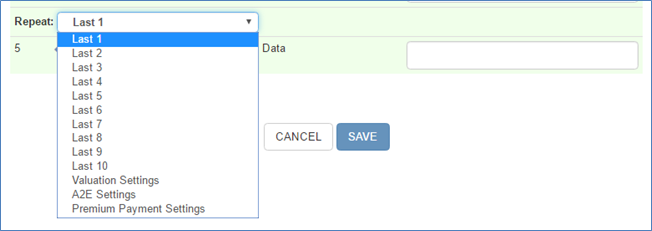 - Valuation Settings (Premium Schedules, Verification of Coverage, Illustration): the items in the collection come from the named Valuation Settings on the case;