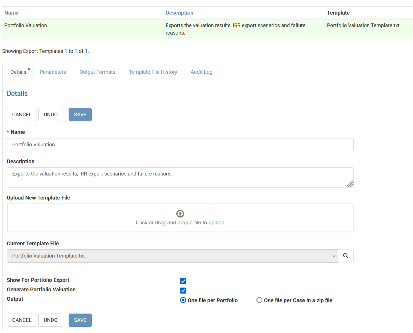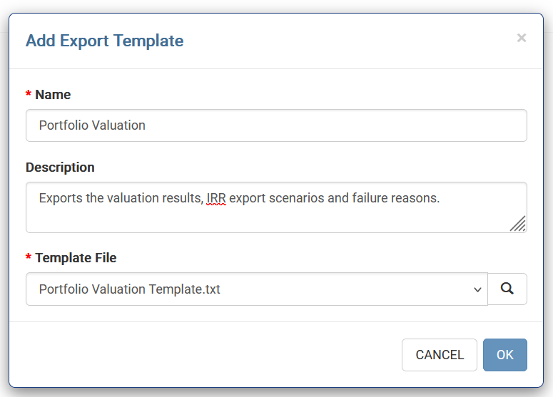 Export Templates with Portfolio Valuations