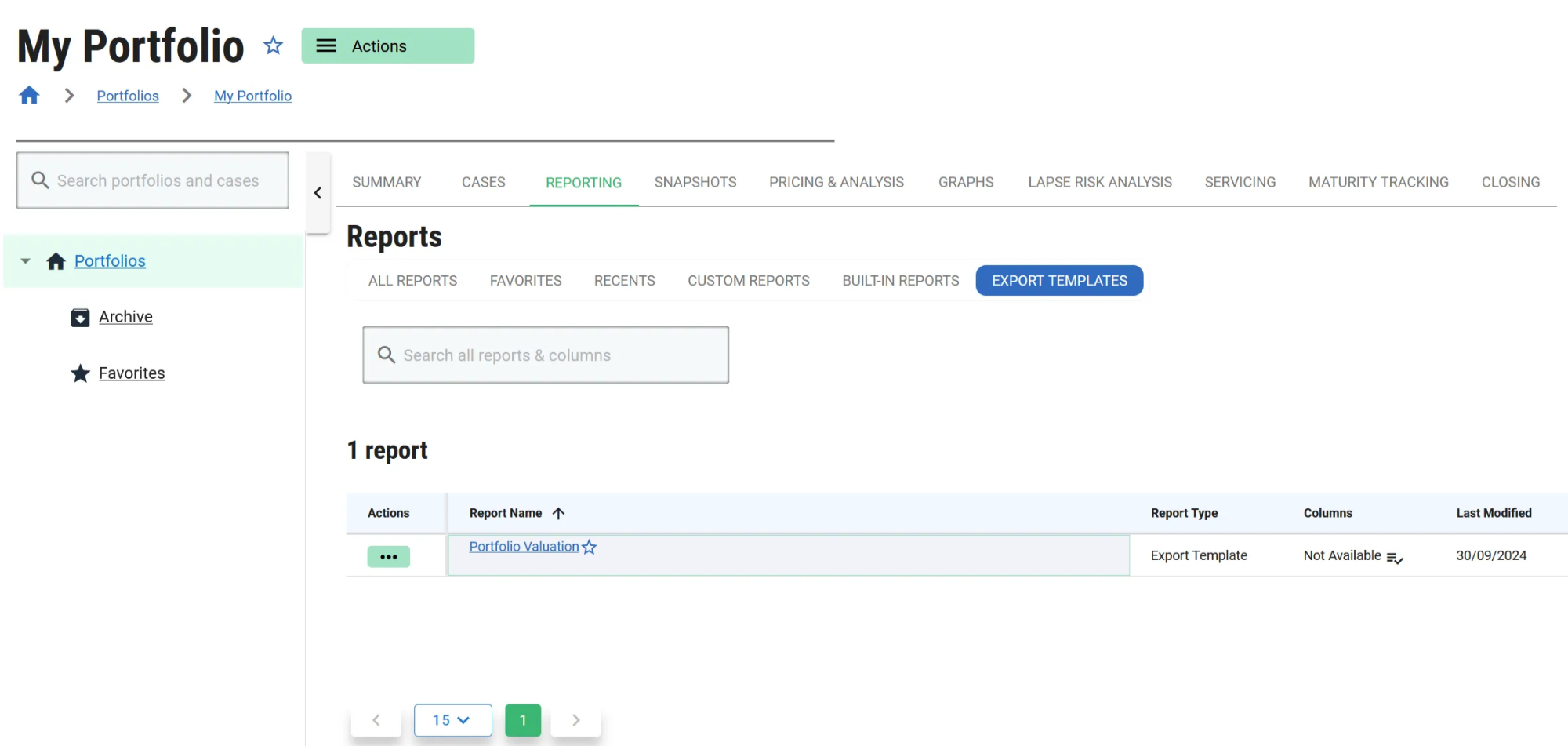 Export templates requiring a portfolio valuation may only be run from the Portfolio, Reporting tab.
