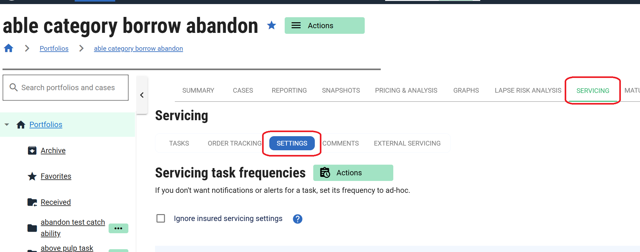 The tags may be enabled on a per-Portfolio basis by accessing the Servicing tab and the Settings tab within.