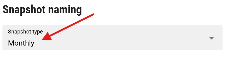 This is the name of the Snapshot Type, that will appear in the “Snapshot type” drop down when creating a new Snapshot.