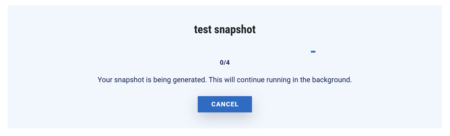 When you’re ready, click “CREATE SNAPSHOT” to create the snapshot. This process will take approximately 1 second per Case. So if you have a Portfolio of 120 Cases, that will take about 2 minutes. You will see a screen like this while the snapshot is in progress: