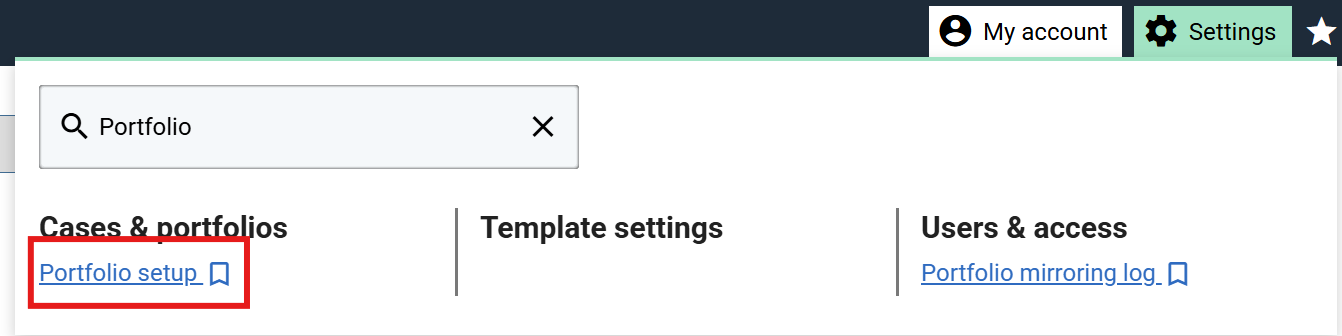 Snapshot types can be defined using the Portfolio Setup page, which is accessed via the menu shown below.