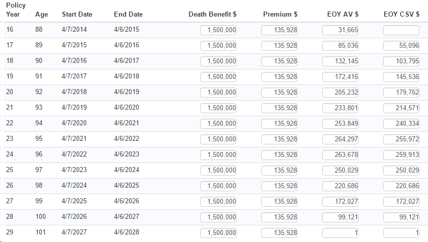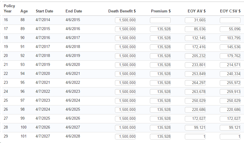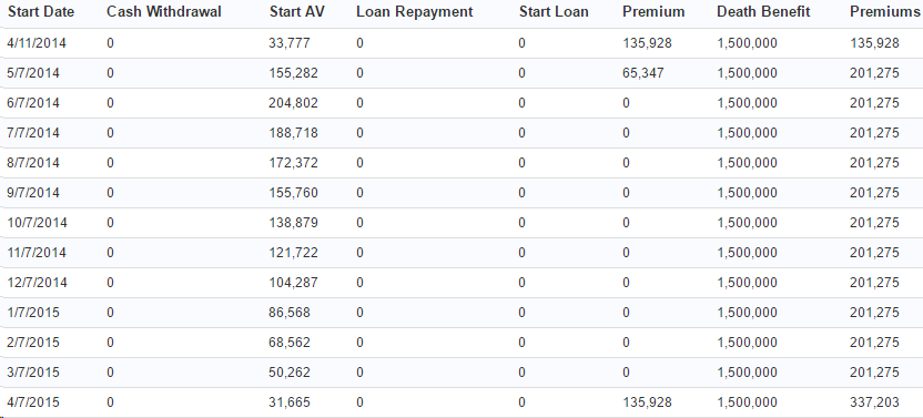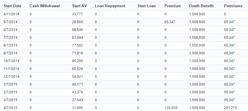 Then the lump sum would be applied in addition to the regular premium, leading to a payment schedule like this: