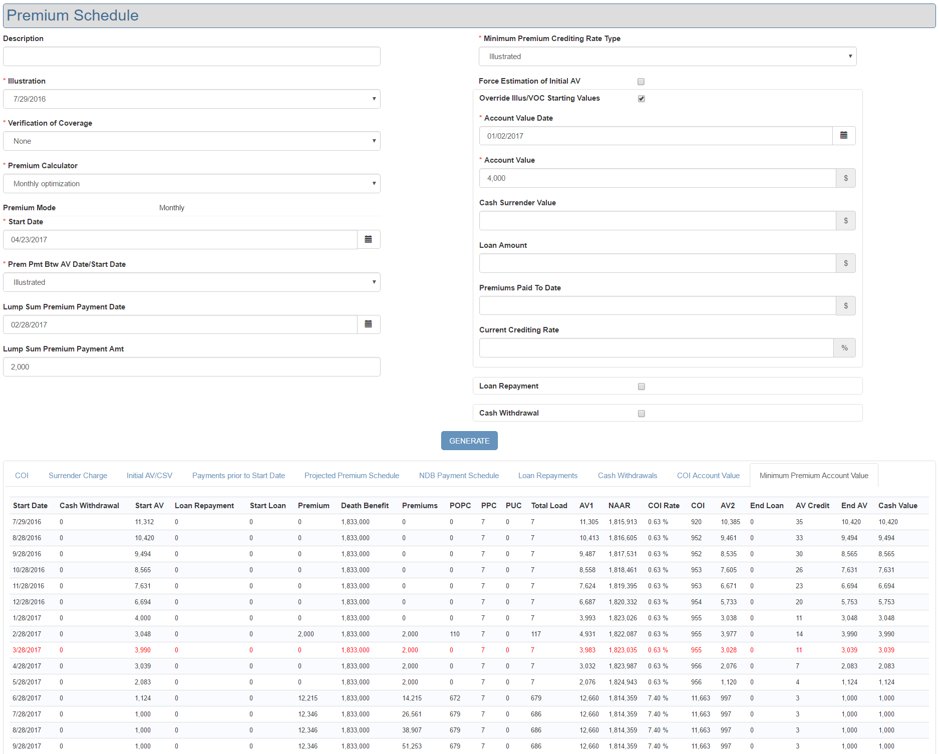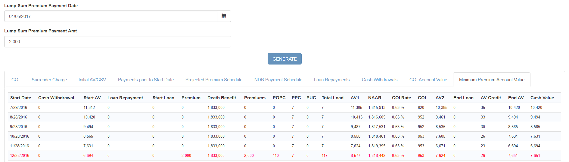 There are pricing scenarios where the buyer of a policy requires the seller to make a lump sum premium payment, for example to increase the account value such that there is no risk of the policy going into grace.