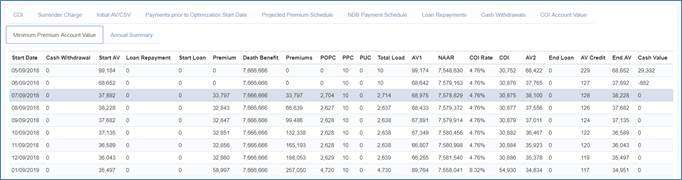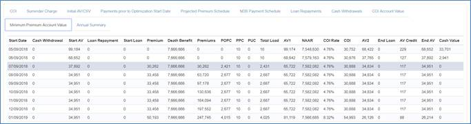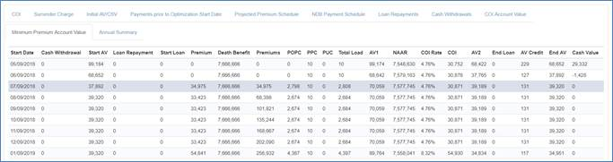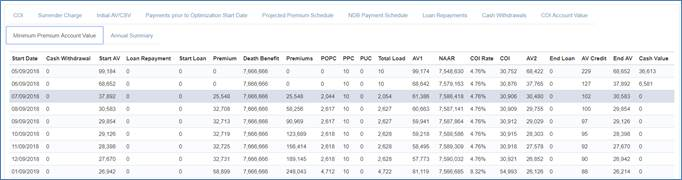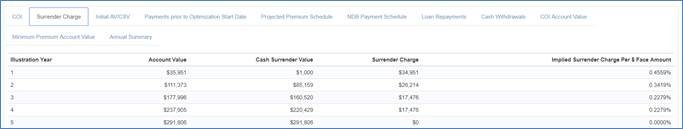 Out of the box monthly optimization (threshold CSV $0) gives us the surrender charge (SC) of $34,951, dropping to $26,214 in policy year 12.
