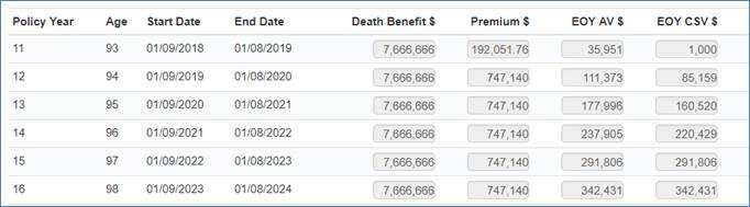 You can see that we start with a SC of $39,320, which is based on the SC on illustration date ($99,184-$59,864). We then drop to $34,951 in PY 12 because the Annual with Delay tells us that the SC calculated at the end of PY 11 in the illustration is used in PY 12.