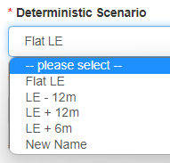 - Deterministic (Value Date): a date of death is calculated from Value Date plus the bump specified in the Deterministic Scenario drop-down. For example, if value date is 19-June-2019 and we specify LE + 12m, the date of death will be 19-June-2020.