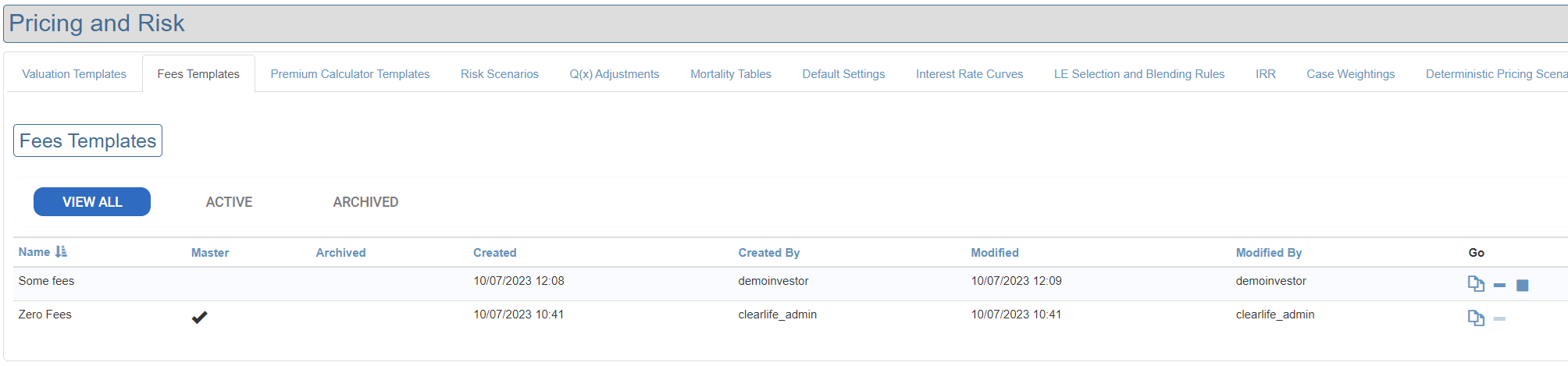 ClariNet has the ability to model fees as part of both single case and portfolio valuation. Fee amounts are managed in Pricing and Risk.