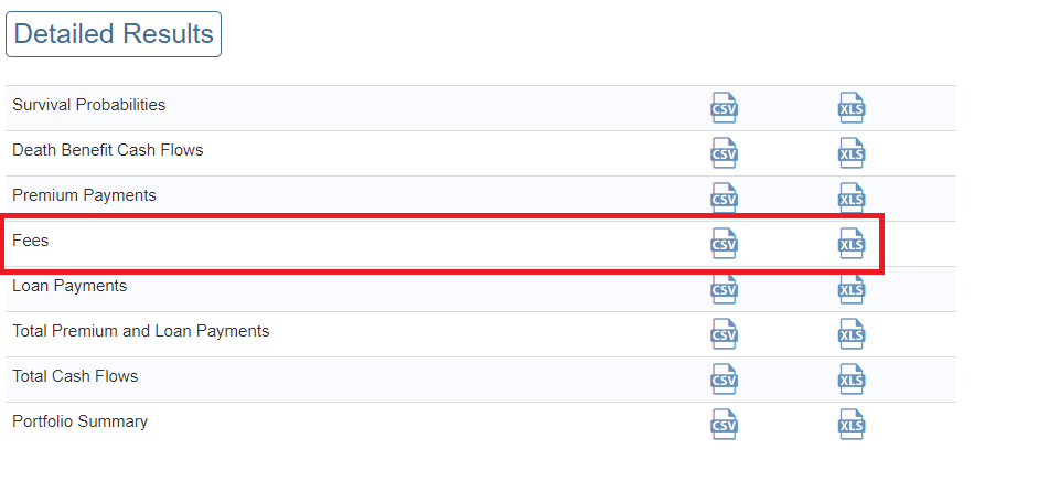 If Fees have been specified, as well as being included in the valuation, the amounts can be downloaded: