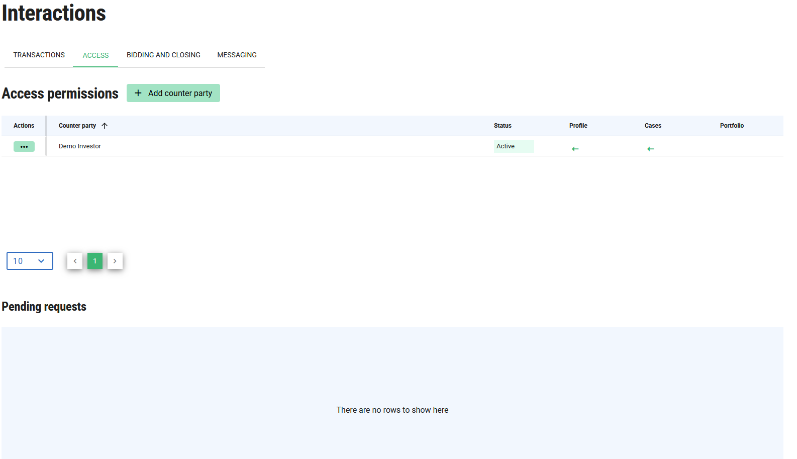 - Click the Add counter party button to add Access Permissions for a new ClariNet LS Client: